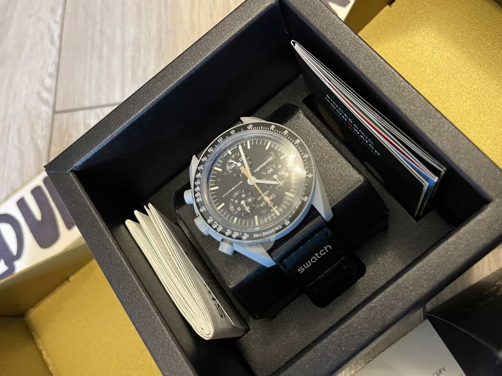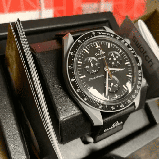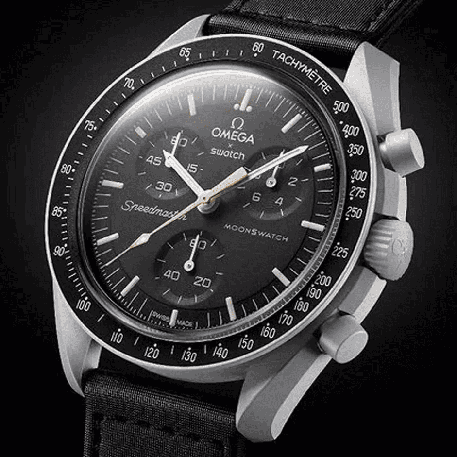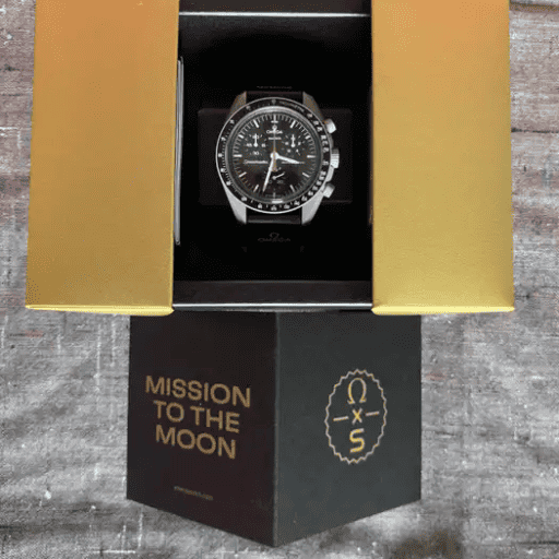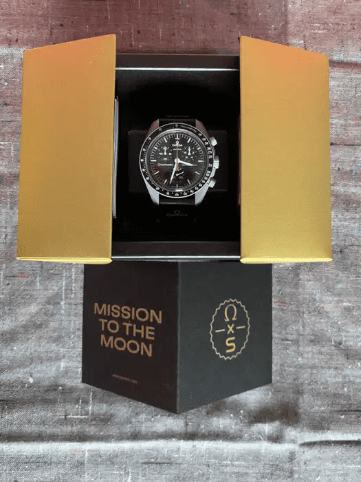 The MoonSwatch Mission to Moonshine Gold is a unique watch with a striking design that sets it apart from the original MoonSwatch. The combination of the gray Bioceramic case and the Moonshine Gold coating on the chronograph seconds hand creates a bold and luxurious look.The Swatch x Omega Mission to the Moon (SO33M100) was released In March 2023 for a retail price of $295.